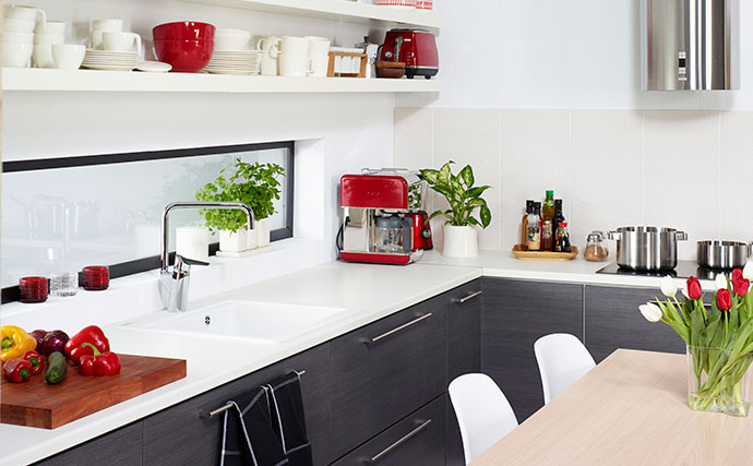 Oras Optima 2733F en stilet kombination af krom og mørkegrå. Køkkenarmaturet passer perfekt ind i det moderne køkken. Den store plads under en svingbar tud, giver god plads til arbejdet i vasken.
