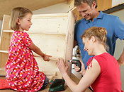 “Ideen med kamæleonmøbler er, at de kan ændres, så en reol kan omdannes til en seng, et bord kan omdannes til en kiste, og et puslebord kan blive til en vægreol”, siger dr. Annette Becker, der er brandmanger hos Bosch Power Tools. “Vi har udviklet nogle planer og tegninger til dette formål, men der er ingen grænser for fantasien”.