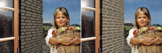 Til et gyldent murværk vil en gylden fuge skabe harmoni, mens en hvid eller sort vil skærpe kontrasten mellem fuge og murværk. Vælges den spidse rygfuge, opnås et mere arkitektonisk interessant resultat, mens den afrundede brændte fuge giver et blødere look.