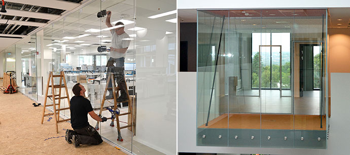 Tømrer- og Snedkerfirma Arne Danielsen A/S udfører det meste glas arbejde. Levering og montering af indvendige glaspartier, base kabiner og udskiftning af thermoruder.