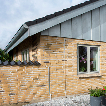 Stadig flere boligejere vælger at beklæde husets gavle og sterne med Rheinzink. Det giver huset et både moderne og tidløst udseende med et strejf af arkitektonisk elegance. Samtidig slipper man for det evigt tilbagevendende arbejde med at male og vedligeholde træværket, da Rheinzink har lang levetid – 50 år eller mere – og blot bliver flottere med årene.