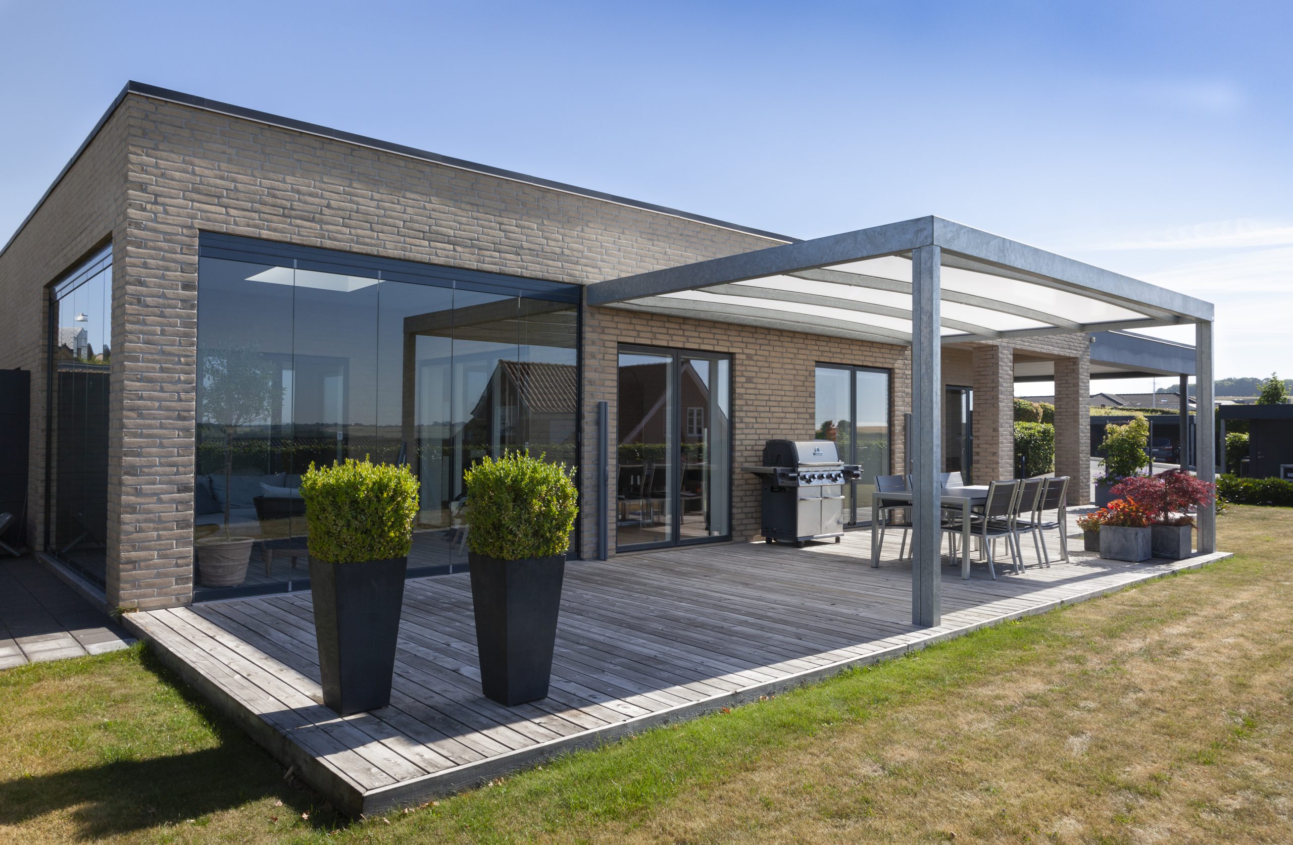 En overdækket terrasse udvider dit livsrum og gør det muligt at skabe et ekstra opholdsområde uden for dit hjem. Du kan indrette terrassen med komfortable møbler, spisebord eller en lounge, hvilket gør den til det perfekte sted til at spise, slappe af eller underholde gæster. Mulighederne er uendelige – du kan endda tilføje varmeapparater, så du kan bruge området om aftenen eller på køligere dage. På den måde får du ekstra plads, som kan udnyttes hele året.