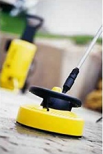 Kärcher letter dig i arbejdet med rengøring af terrassen. Terrasserenseren svæver ved hjælp af en luftpude. Teknikken bygger på at to stråledyser sætter en propel i rotation ved hjælp af vandtrykket, hvorved der dannes et overtryk under skjoldet. T-racer hedder dette opfindsomme tiltag fra Kärcher, måske fordi rengøring foregår i racerfart?