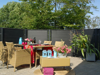 Lad for eksempel et Trend-hegn i sand danne baggrund for et farverigt blomsterunivers og krydr stemningen fra varmere himmelstrøg med futuristiske havemøbler i klar rød. Eller vælg et sort hegn og giv den romantiske middag for to på terrassen et stilrent strejf af sydeuropæisk charme.