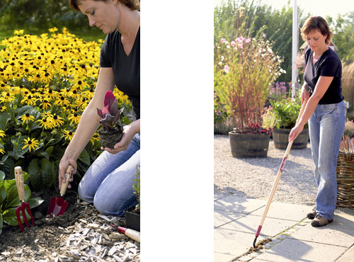 Den lille planteske med smalt blad er for eksempel velegnet til plantning af georginer, der i løbet af sommeren vil vokse op og kaste et farvestrålende skær over terrassen. Og plantegaflen i hel-metal er som skabt til omplantning, den beskadiger nemlig ikke de sarte rødder, når de fine blomster skal have mere plads at udfolde sig på.