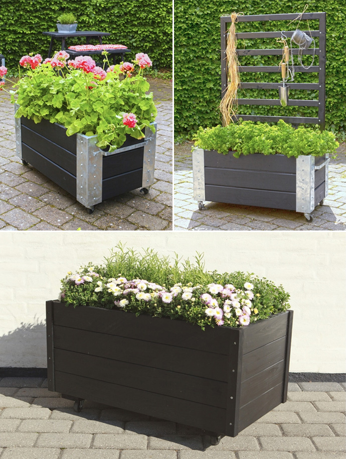 De nye blomsterkasser er perfekte til dyrkning af krydderurter og jordbær på terrasssen. Du kan med fordel anvende