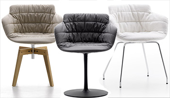 Flow stolen er en smuk fuldpolstret stol som laves med forskellige understel. Træstellet i egetræ er elegant til stolen og har indbygget drejefunktion. Søjlestellet er lavet i retro-stil og laves i sort og hvid. Dertil kan stolen fås på 4 ben eller medestel i stål.