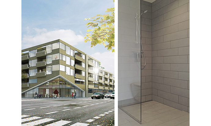 Når byggeriet på 8.000 m2 på den gamle brandstationsgrund i Herning står klar i januar 2015, får alle nye beboere fornøjelsen af badeværelses-udstyr i verdensklasse. Smukt, enkelt og funktionelt fra fliser til installationer. For at fuldende udtrykket er badeværelserne udstyret med unidrain®’s komplette løsninger inden for linjeafløb og smukke brusevægge i glas.